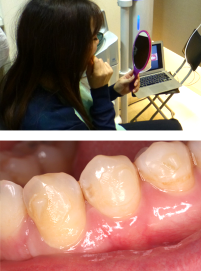 写真やモニターでわかりやすく説明し、拡大鏡を用いた精密な治療を実施(保険診療でも徹底)。